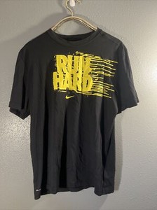 Nike Shirt XL Mens Run Hard Dri Fit Black Graphic Short Sleeve Crew Neck