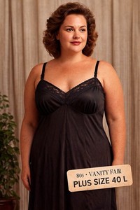Vintage 80s Vanity Fair Black Nylon Full Slip Lace Trim Size 40 L Plus Size