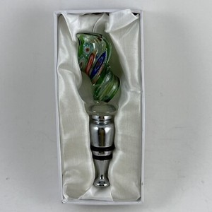 Wine Bottle Stopper Art Glass Swirl Shape Stopper 4.75” Tall Multicolor Green