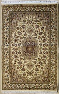 Rugstc 4x6 Pak Persiann Ivory Rug, Hand-Knotted,Pictorial Khayaam,Silk/Wool