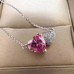 Heart Cut Simulated Pink Sapphire Solitaire Pendant Chain 14k White Gold Plated
