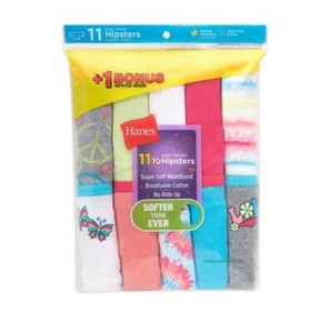 Hanes Girls Size 10 Muliticolor Cotton Tagless Hipsters 11 Pack NWT