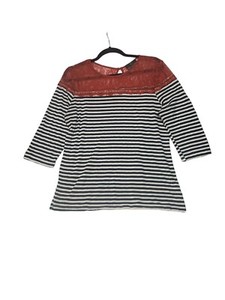 Fenn Wright Manson Black & White Striped 3/4 Sleeve Shirt With Lace Top