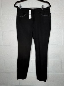 White House Black Market Skinny Ankle Pants Sz 8 Black Houndstooth Zip Hem NWT
