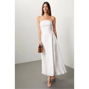 Favorite Daughter White Strapless Dress Linen Blend Fit & Flare Maxi Size 8