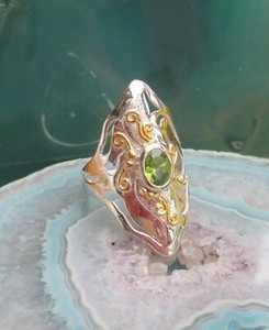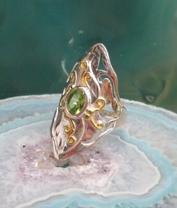 🐍Ring Two Tone Art Nouveau Ornament Peridot Green Silver 925 Size 17.2