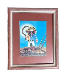 Native American Kachina Painting Signed 16/30 Artist Unknown Framed