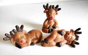 3 Vintage Sleepy Reindeer Deer Ceramic Figurines Christmas Hand Painted Kitsch