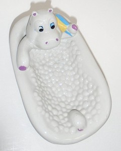 Vintage Soap Dish Hippo Bubble Bathtub 6"L 4"W 4"H Ceramic Hippo and Tub
