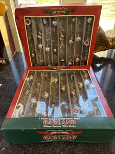 New Radko Shiny Brite Silver Tinsel Ball Glass Garland Christmas 7ft Green Red