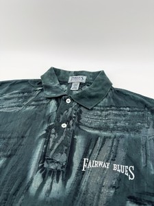 VNTG 90’s Fairway Blues Sportswear All Over Print Green Golf Polo Shirt SZ Large