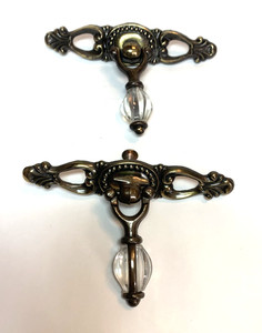Vtg Crystal Tear Drop Pull w/ Backplate Cabinet Drawer Lot of 2 KBC 39047