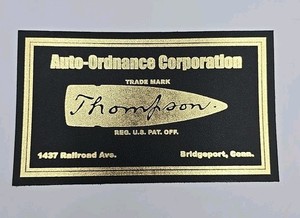 ORIGINAL GUNMAKER TRADE GUN CASE LABEL - THOMPSON AUTO ORDNANCE CORP LEATHER