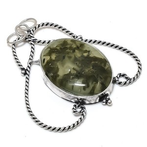 Dendrite Opal Gemstone Handmade 925 Sterling Silver Jewelry Pendant 2.76" E822