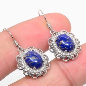 Copper Lapis Lazuli & CZ Handmade Antique Design Earring 1.29" (4