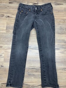 True Religion Womens 24 Kate Black Denim Cropped Embroidered Stretch Jeans