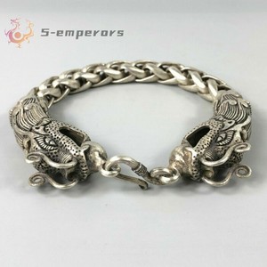 China Collection Hand-Carved Tibetan Silver Dragon Statue Rings Gift