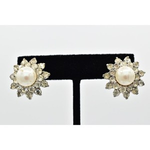 Judith Leiber Vintage Clip Earrings Crystal Pearl Heavy Round Signed 1970s BinBF