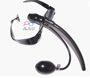 Inflatable latex mask Open eyes mouth nose with inflatable Horns