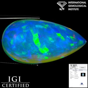 7.02 Ct Natural Ethiopian Opal IGI Certified White Pear Cabochon Cut