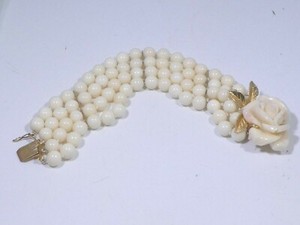 GORGEOUS RETRO 14K GOLD AND 4 STRAND WHITE CORAL BRACELET W ROSETTE