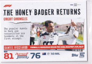 Topps F1 Turbo Attax 2024 Formula 1 No. 155 Daniel Ricciardo The Honey Badger