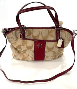 Coach F28208 Khaki / Black Cherry Signature Convertible Crossbody Shoulder Tote