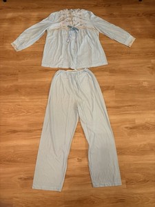 VTG Aristocrat By Superior Light Blue Pajama Set Short Sleeve Long Pants Sz 34