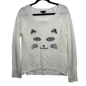 T/O Sweaters Cat Face Knit Long Sleeves White Sweater Size XL Casual Lightweight