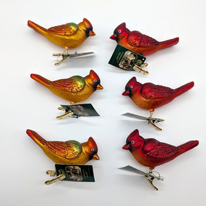 NEW Clip-On Bird Ornaments Set of 6 CARDINALS Male Female Old World Christmas