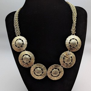 Retro Chunky Honeycomb Rhinestone Bee Multi-Strand Statement Gold Tone Necklace