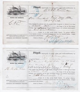 1876 LOT OF 2 BILL OF LADING STEAMSHIP LAWRENCE FESSENDEN NAUTICAL STEAM BOAT