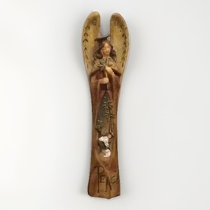 Primitive Peace Christmas Bethlehem Star Nativity Scene 11" Resin Brown Angel