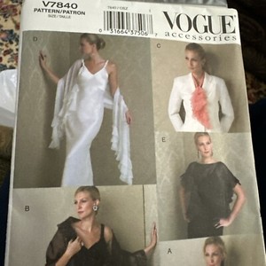 Vogue Pattern V7840 Scarves Wraps Poncho Accessories Sz 8-22 Uncut