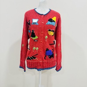 VTG Red Susan Bristol Cardigan Knitted Sweater Black Cat Women’s Size XL