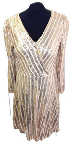 Nanette Lepore Dress Women's 10 Gold Sequin Striped Holiday Party Ships from USA