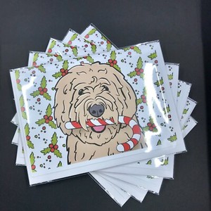 Goldendoodle Dog Candy Cane Christmas Cards 5 Handmade Blank Cards + Envelopes