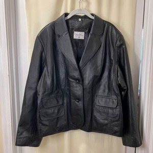 Pamela McCoy Black Leather Blazer Style Jacket Pockets Classic Career - 3X