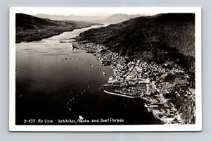 Postcard AK Ketchikan Alaska Air View of Town and Boat Parade Photo RPPC Y19