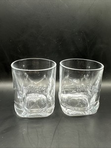 Set of 2 Jim Beam Embossed Square Bottom Heavy Rocks Highball Glasses