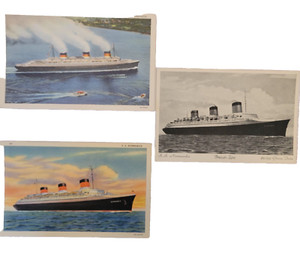 3 Set S.S. Normandie Steamship French Line Gross Tonnage Real Photo Postcard