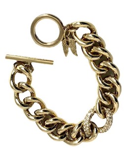 Victoria's Secret Chain Link Bracelet Gold Tone Rhinestones Toggle Chunky