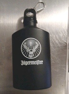 Jagermeister Black Metal Flask Canteen Travel White Logo Drink Water Bottle