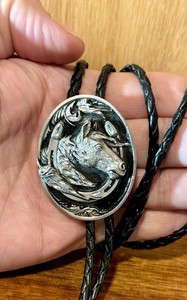 VINTAGE 1996 SISKIYOU BUCKLE CO. DIAMOND CUT PEWTER BOLO TIE GENUINE LEATHER