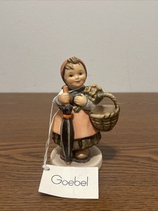 Goebel Hummel On Holiday HUM 350 Girl Figurine 4 2/8 " Tall Basket Umbrella 1965