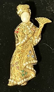 Vintage Giovanni Brooch Geisha Japanese Gold Multicolor Rhinestones Pin EUC