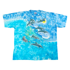 Vintage Dolphins Shirt Mens XXL Liquid Blue Tie Dye All Over Print Graphic Tee