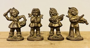 4 Vintage Bronze Boy And Girl Musician Figurines Made In Canada