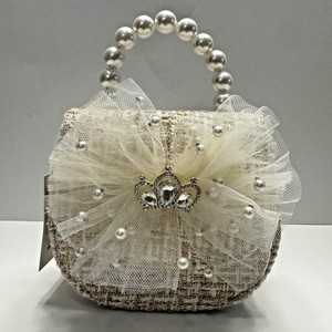 Dear Ellie Mini Purse Girls One Size Cream Pearl Handle Crown Bow Bag Tweed