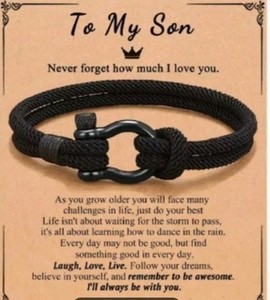 Men’s / Teen Black Braided Rope Bracelet U Clasp "To My Son" Love Quote Card U.S
